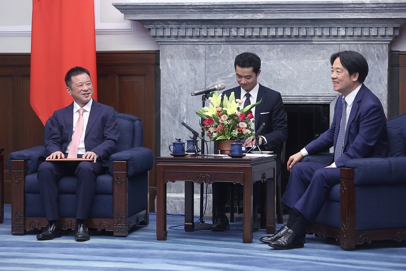 訪賓一行由國家發展委員會主任委員劉鏡清及經濟部長郭智輝陪同,前來總統府晉見總統,總統府秘書長潘孟安也在座。