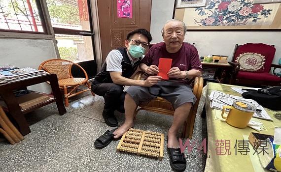 南投縣境內有29位百歲以上人瑞榮民眷,由榮服處王處長陪同周副會長前往長輩家中分送百歲關慰禮金及營養禮品,傳達中華佛教善緣慈善會的祝福美意及榮服處的關懷之情,令長輩們滿懷感動。家住南投市高齡104歲的趙爺爺看到榮服處一行人來看他,充滿歲月痕跡的臉上佈滿了笑容,皺紋裡都洋溢著歡樂的情緒,直說這樣的服務照顧真的讓人感到非常溫暖。而住在名間鄉106歲的蔡爺爺,坐在樹下乘著微風,對於榮服處的到訪,一雙眼睛早已瞇成了彎彎的月牙,感激的心情溢於言表,周副會長及王處長等慰問團隊,在親訪贈送慰問金的同時,也一再叮嚀長輩們近期肺炎、新冠病毒再度盛行,要持續配戴口罩及勤洗手,且天氣炎熱要適時補充水分避免熱傷害,維護自己身體健康。