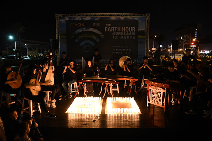 當天在眾人倒數聲中,福朋喜來登、澎湖縣政府、雅霖大飯店、澎澄飯店、西瀛虹橋、石泉、東衛電塔燈光熄滅共同響應,現場點燃60支蠟燭,並由澎湖海島童軍團、馬公國中管弦樂團、國樂社、中正國小合唱團及澎科大熱音社,以全程不插電的方式表演。