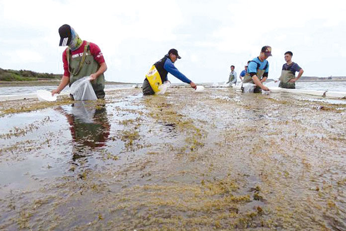 主任謝恆毅表示,為增加海洋生物漁業資源,去年11月底利用中國半葉馬尾藻藻苗進行無性生殖方式藻場建置,經過4個月觀察目前已形成藻床,覆蓋率達80%以上。當天由水試所助理研究員冼宜樂與種苗每殖場長藍亞文等人,一起放流高經濟的遠海梭子蟹(沙蟹),每隻只有0.2到0.3公分,以提升蟹苗存活率。
