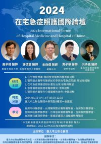 該院訂於113年8月10日(星期六)上午8時30分至12時30分於中興院區第一會議,辦理「2024在宅急症照護國際論壇」,為整合醫學學術研討會暨新書發表會,邀請衛福部、健保署、衛生局及整合醫學醫學會蒞臨指導,更邀請美國、新加坡及國內在宅急症照護領域學者專家專題演講,藉由國際交流增進醫護團隊於在宅急症照護經驗分享,歡迎有興趣者與會交流。