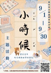 童年時我們探索世界無所畏懼,長大後面對接踵而至的難題卻無所適從?臺北市立圖書館景新分館將於9月1日起至9月30日,推出「小時候」主題系列活動,邀請您一同乘坐閱讀時光機,回味那些陪伴我們成長的故事和美好記憶,再現演繹童年場景事物以及繪本書籍的精彩內容並尋獲閱讀新樂趣,藉此喚醒心中的孩子,找回小時候的無限創造力及勇氣!