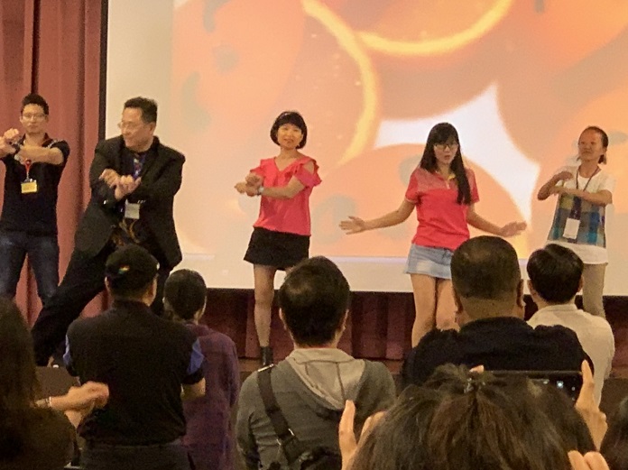 午餐時間後,台上主持人帶領台下大家跳舞,讓前來聽課的聽眾們在聽演講之餘,也能顧及身體健康。之後由HBD美國洛杉磯CEO學院執行長崔沛然分享接班人和4.0 CEO培訓計畫,點出CEO關鍵進化過程的第四階段是「聚合」,並揭露4.0 CEO的五項主宰力;區塊鏈是本次講題的焦點之一,由全球華語魔法講盟執行長分享如何運用區塊鏈賺大錢的祕訣,並且分享和他國利用區塊鏈獲利的人士們接觸的歷程。