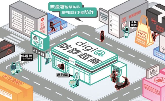 該專區以「digi@防詐超商」為主題,模擬便利商店的購物情境,設計了一系列寓教於樂的互動問答遊戲,以網購自動包裹取貨櫃的體驗方式,教導民眾平時常見的詐騙手法,以及如何有效運用防詐工具,希望能用貼近生活化的方式,提高民眾對詐騙的警覺性,減少成為受害者的風險,和大家一起聯合防詐!