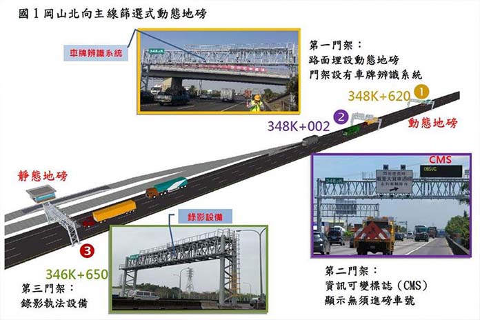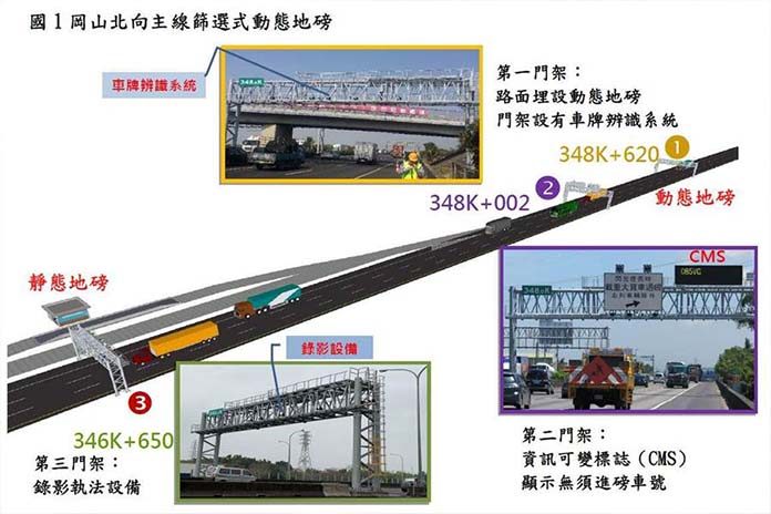 依據現行規定,載重大貨車無論有無超載,行經高速公路地磅站且開磅時,均需要過磅,以防止車輛超載並維護行車安全。而為提升超載大貨車行車便利,並減輕靜態地磅負荷,也降低過磅車輛回堵至主線的頻率,高速公路局於岡山地磅站建置「主線篩選式動態地磅系統」,委請工業技術研究院完成第三驗證後,於7月1日起啟用。