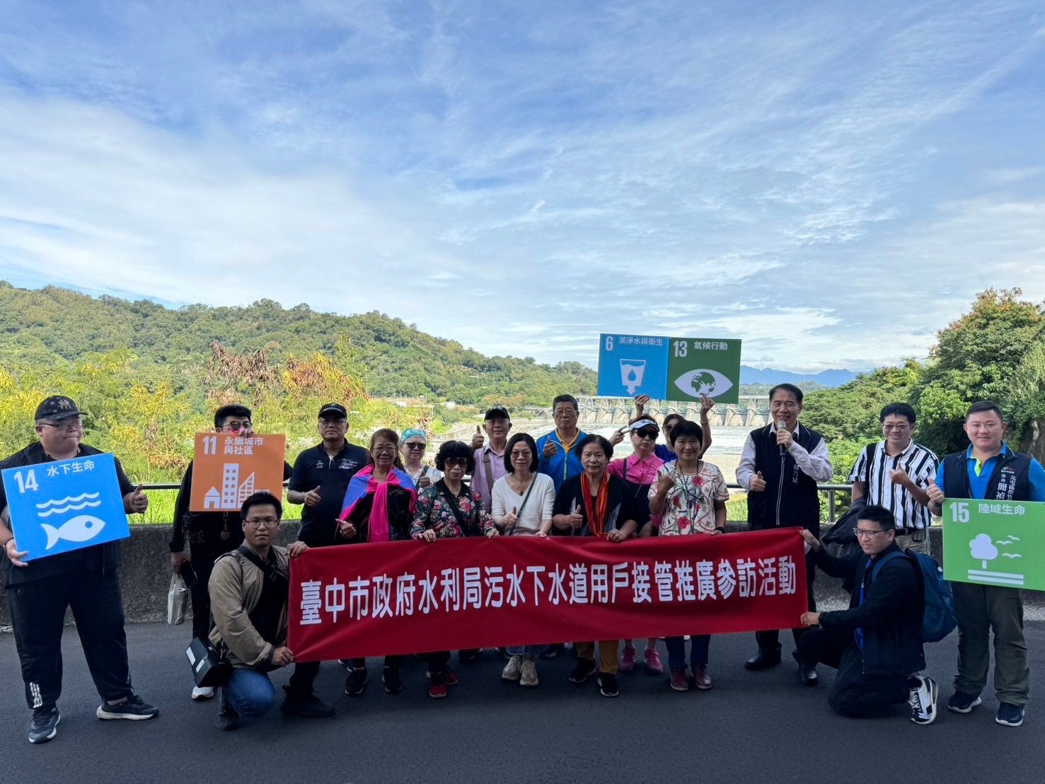 家戶污水由排放化糞池提升到排放污水下水道,是全新的生活環境改變。台中市政府水利局為推廣宣污水下水道工程用戶接管的優點,日前邀請豐原區豐田里劉瑞銓里長、鄰長及地方人士至豐南街235巷參訪污水用戶接管成果,透過實際參訪看到後巷空間明亮,側溝不再有惡臭,不用再抽水肥以及蟑螂老鼠減少等好處;里鄰長們同時也到石岡壩水資源回收中心了解污水處理程序並參加環境教育活動,也參觀食水嵙溪小水力發電廠。