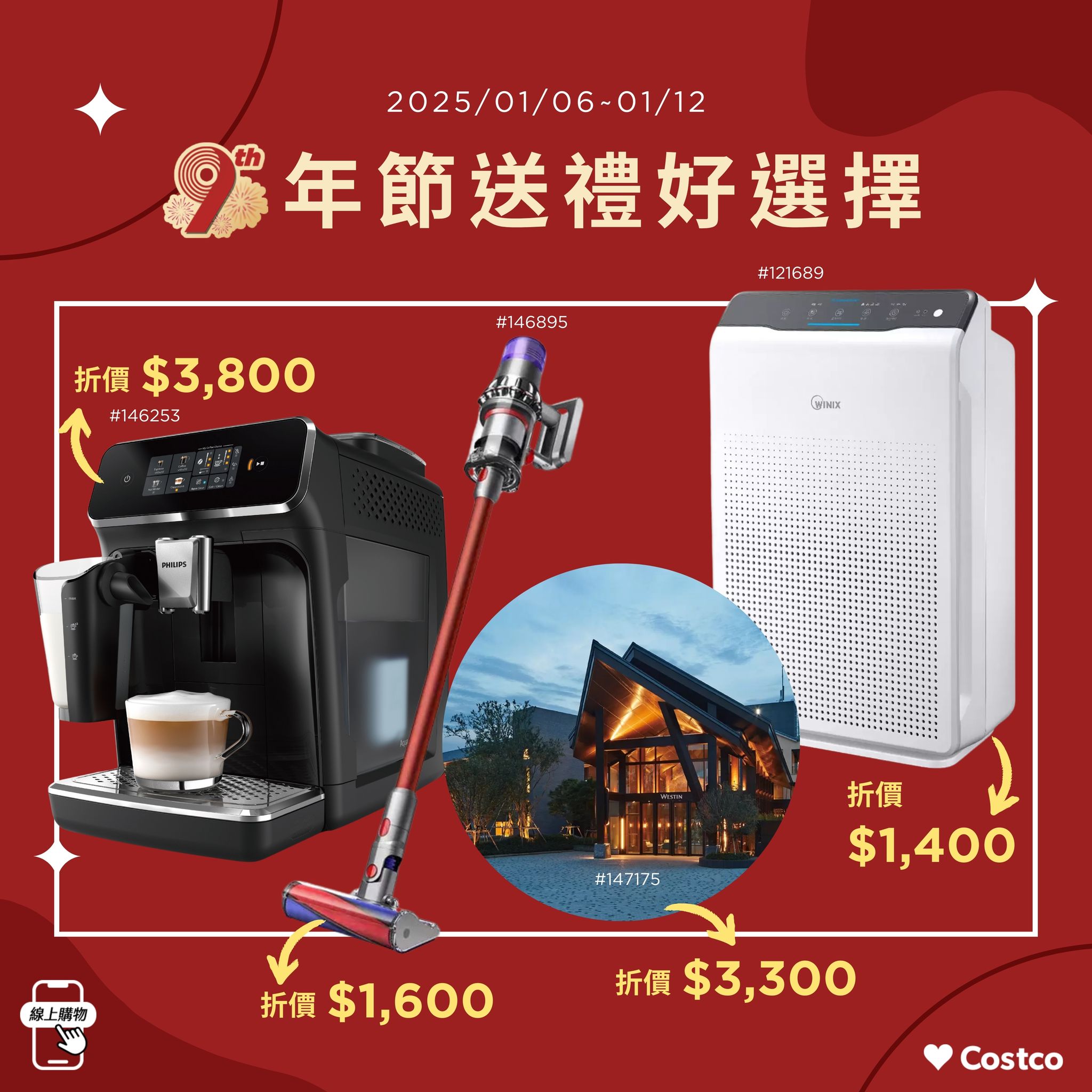 2025年一開始,好市多就要推出重磅線上購物促銷,因為適逢好市多推出線上購物九周年慶,不但逾百件熱銷商品通通有感折扣,1/6到1/9這四天,購物滿萬元輸入『9yr』,還能享有880元的折抵!