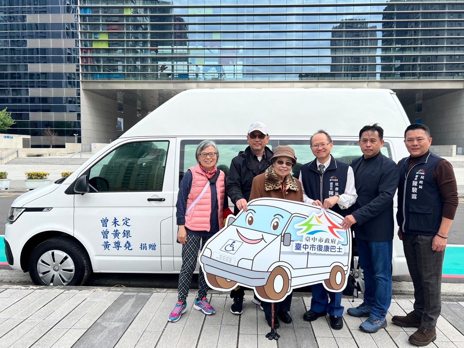 紀念逝世的親人,也為了讓身障朋友行得更便利,住在台中市的曾愛嬌女士,今(9)日捐贈台中市政府1輛高頂復康巴士,未來服務中區、西區、東區、南區、大里和霧峰的身心障礙者。台中市社會局副局長陳坤皇代表受贈,感謝曾女士行善不遺餘力,關懷身心障礙者行的安全,更將對親人的思念化為行動,讓愛永存。