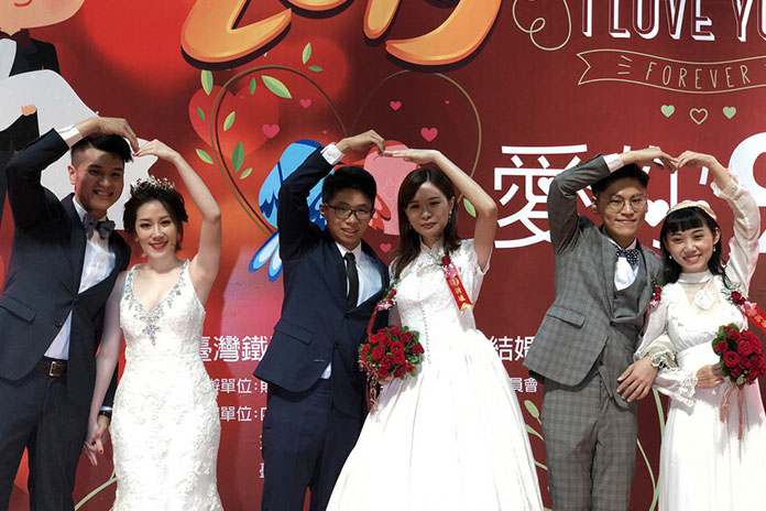財團法人臺灣鐵路管理局職工福利委員會訂於9月25日(星期三)9時30分至12時在臺北車站多功能展演廳辦理「108年集團結婚典禮」,有28對佳偶締結連理,由交通部政務次長黃玉霖證婚、勞動部政務次長林明裕為介紹人、臺鐵局張政源局長為主婚人,臺鐵工會張文正理事長,鐵路警察局莊勝雄主任秘書、職工福利委員會黃添富主任委員、以及多位貴賓到場觀禮,並邀請眾多來往旅客參與這場幸福婚禮,一同為新人許下「2019愛你久久」的承諾見證。