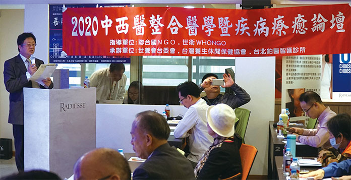 2020中西醫整合醫學暨疾病療癒論壇,於1月5日在台北城中鉑醫智匯外科診所7樓醫療會議廳舉行,由大會主委會長周琮堂與院長高國慶揭開序幕。論壇由聯合國NGO、世界衛生組織NGO指導,世界養生委員會台灣養生委員會、台灣養生休閒保健協會、台北城中鉑醫智匯外科診所一起承辦。