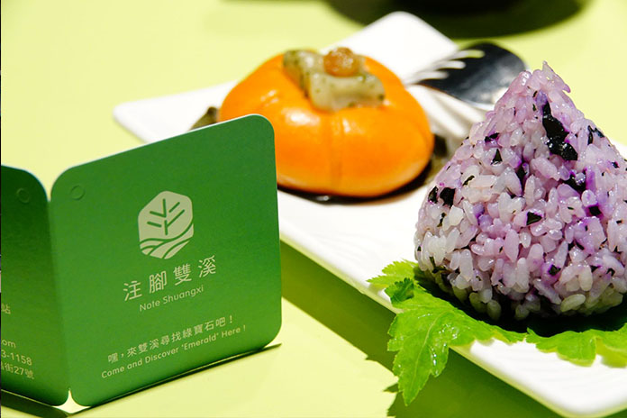 為支持在地小農,新北市農業局與「注腳雙溪工作室」合作推出「圓緣飯包」,隨雙溪各季節搭配不同食材製作而成,以食物天然的的色彩搭配及清爽的口味令人驚艷。