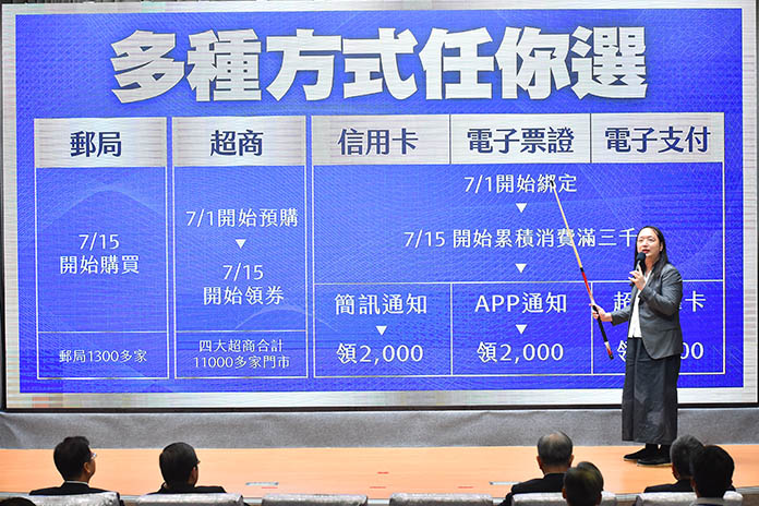 行政院政務委員唐鳳表示,「振興三倍券」領受分為數位及紙本兩種方式。數位「振興三倍券」又有三種方式:信用卡、電子票證及電子支付。電子票證如悠遊卡、一卡通等,電子支付為行動支付。民眾於綁定後,7月15日開始累積消費,累計至3,000元時,各業者將以簡訊、APP推播等方式通知,電子票證亦可至超商靠卡查詢是否達到消費門檻。回饋部分,以信用卡為例,消費累積滿3,000元,帳單直接抵扣2,000元;若電子支付是銀行帳戶,則直接匯入2,000元。另外,目前政府也正評估從ATM提領2,000元現金。假設民眾在綁定後,發現有其他更好選擇,也可取消綁定,但先前累計消費也會一併取消,需重新起算。以上方式,提供民眾擇一使用,希望大家均能以個人最便利的方式領取「振興三倍券」。