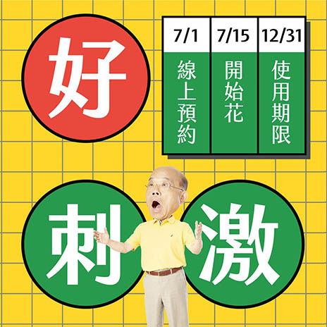7/15(三)起暑假檔期,刺激經濟,年底前必須使用,請大家快點消費。領購時間: