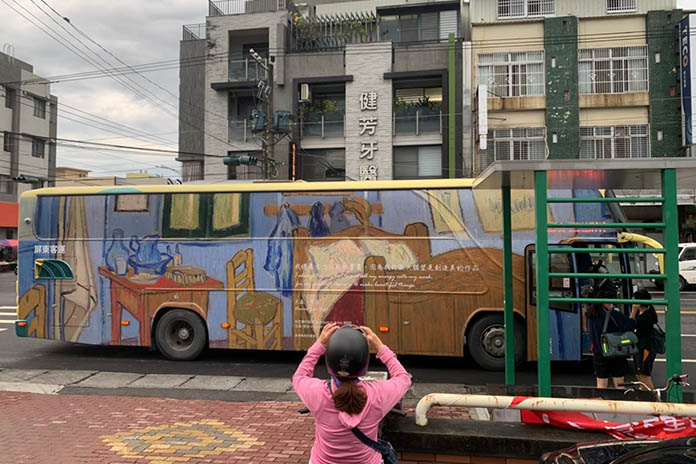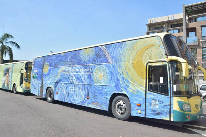 用出國也可以看世界名畫!屏東縣政府「藝」想天開,全國首創藝術公車,為10部公車彩繪世界名畫,以行動美學的概念,讓梵谷、達文西、畢卡索、米勒等畫壇巨擘名作,隨著公車走入屏東各角落。