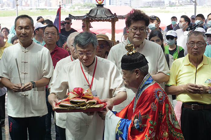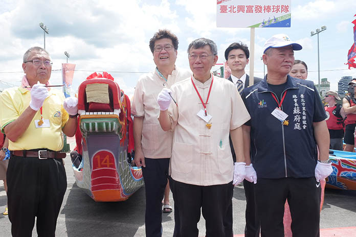 020台北端午龍舟錦標賽如期將於6月25日、26日登場。6日上午於全台唯一以屈原為主神供奉的洲美里屈原宮舉行傳統請神、點睛暨祭江大典,由台北市長柯文哲擔任主祭官、北市體育局長李再立、龍舟選手代表隊及貴賓們共同虔誠上香敬獻,依循古禮祈求眾神保佑今年台北端午龍舟錦標賽順利圓滿、平安成功。