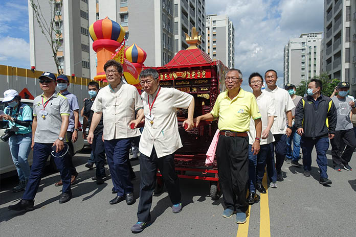 *北投區洲美里屈原宮舉行傳統請神、點睛暨祭江大典,由台北市長柯文哲擔任主祭官、北市體育局長李再立、龍舟選手代表隊及貴賓們共同虔誠上香敬獻,依循古禮祈求眾神保佑今年台北端午龍舟錦標賽順利圓滿、平安成功。