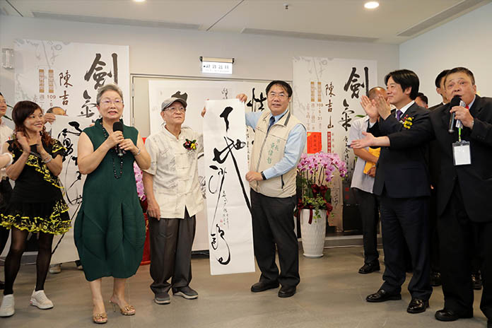 寶級書法大師朱玖瑩先生嫡傳大弟子–陳吉山老師,即日起於天橋教會2F(虹韻文創中心)舉辦『劍氣詩情』書畫作品集新書發表及創作個展。陳老師研習書畫數十年,從無間斷,早期跟隨玖公學習書法、讀書及為人處事,親聆教益三十年,深獲玖公讚許及肯定。7日下午副總統賴清德及台南市長黃偉哲均蒞臨現場表示嘉勉與肯定。