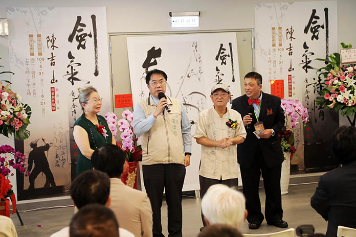台南市長黃偉哲表示,陳老師不僅得到玖公的真傳,而且發揮得更淋漓盡致,他的書品、人品相得益彰,除習字之外,更將所學西畫、國畫元素融合於書法中,有新狂草創作,為創作之一大突破。很高興看到陳老師的作品能集歷年大成出版成書,所出版《劍氣詩情─陳吉山書畫集》一書,不僅呈現老師行、楷、隸、篆等多元面貌發揮,亦收錄老師新狂草之作,筆墨線條中在在展現老師結合劍道健勁形質脫俗的墨蹟及神韻,實為陳吉山老師贈送給台南市的最美麗創作。