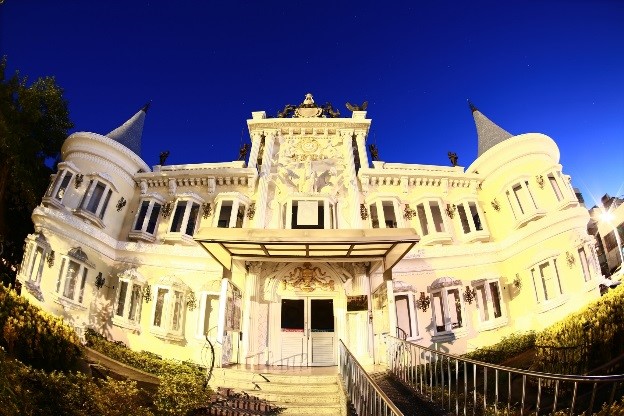 *擁有「全台最美公家機關」頭銜的「移民署」城堡建築總有讓人一秒到達歐洲的錯覺,淡黃色的建築主體搭配兩旁有如地中海般的淡藍色尖頂圓塔,凸出來的角窗,則是明亮的純白色,正面牆面雖有駿馬、白鴿等雕飾,帶有點童話般的幻想感,是超夯的婚紗拍攝景點。
