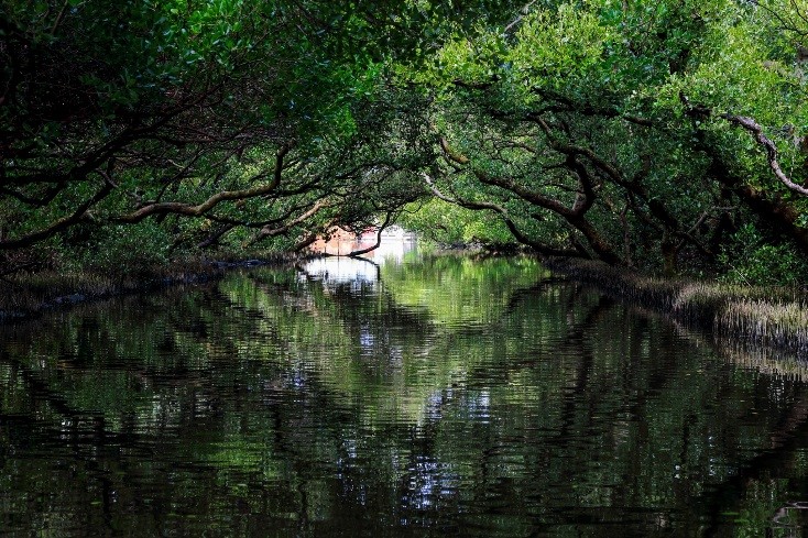 *有小亞馬遜之稱的「四草綠隧」還給你滿眼的綠意,水道兩旁的樹枝在半空中糾纏交錯,濃密的樹蔭遮蔽了太陽,形成一個寧靜涼爽的空間,戴著斗笠,乘坐著竹筏,徜徉在紅樹林綠色隧道裡,體驗動人景觀和豐富生態,穿梭於城市秘境之中。