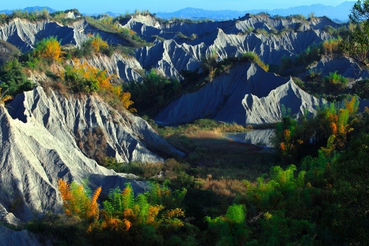 *美國大峽谷是大自然鬼斧神工的傑作,左鎮「草山月世界」的白堊土地形也和大峽谷一般獨特,沿途所見盡是稜角分明的特殊地形,以及青翠的刺竹景觀,廣闊的景觀有萬山朝拜的氣勢,適合來此大開眼界。體驗過荒蕪惡地之美。