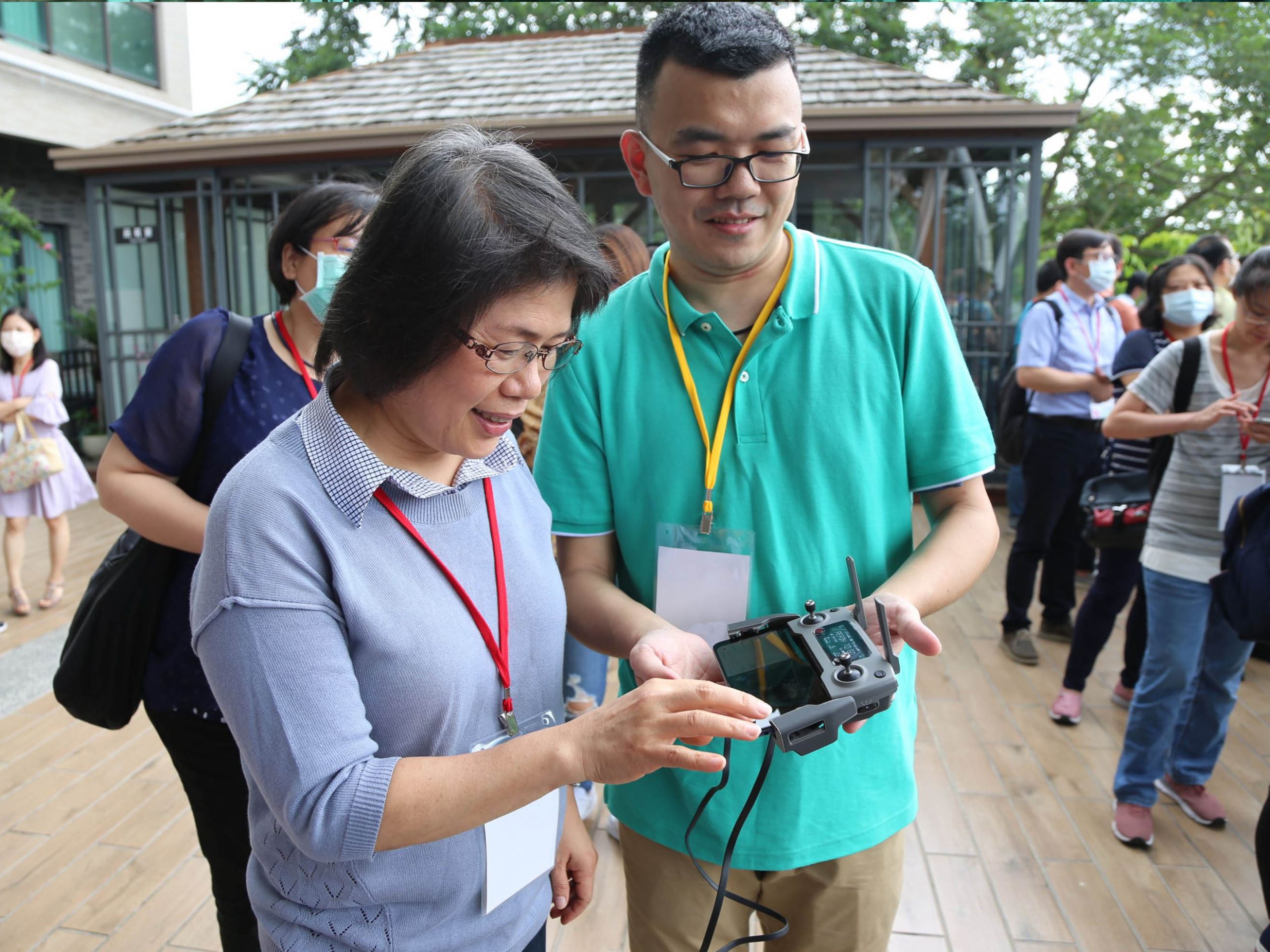 除了學術課程、如何將數據導入科學化分析模組發表會外,財稅局還安排現場飛行展示,由財政部財政資訊中心高級分析師嚴珍親自操作空拍機「一鍵起飛」,全程以「自動飛行、自動拍攝」方式完成稅籍查核任務,再自動回到起飛的地點落地,與會人員目不轉睛的盯著無人機飛行軌跡,並透過FPV螢幕了解空照任務執行過程。