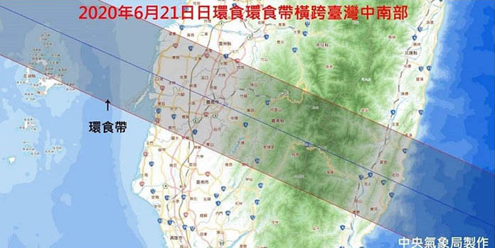 *預計有30秒的日環食奇景,而白河關子嶺風景區碧雲寺、蓮花公園及周邊蓮花公路、後壁小南海風景區、新營天鵝湖及南瀛綠都心、東山仙湖農場、東山服務區及175咖啡公路各景觀餐廳都是可觀賞到日環食的熱門景點。