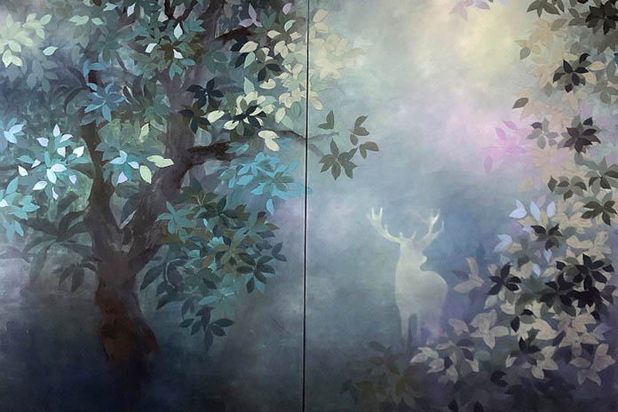 藝術家李羿慧於大學期間開始熟絡膠彩繪畫技巧,隨後於碩士期間赴日本筑波大學日本畫科系學習,將膠彩技法與特殊媒材更加活絡地呈現於平面繪畫中。此次創作展探討「迷幻」的多樣面貌,探究如何在「迷」與「幻」之間的微妙關聯製造出一場唯美的「境」。並藉由墨與礦物性顏料中通透的性質與厚實質感混合共融,將看似矛盾的兩種材質透過藝術創作的方式,表現出內心理想的夢幻造境。