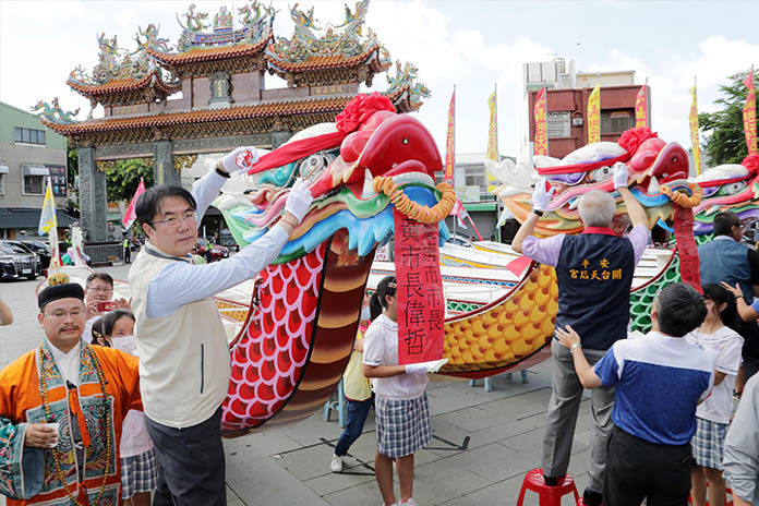 020台南市國際龍舟錦標賽,將如期於6月23日至6月25日在台南運河安億橋至承天橋舉辦,台南市政府於18日遵循古禮,在安平開臺天后宮舉行龍舟開光點睛儀式,由台南市長黃偉哲擔任主祭官,並由議長郭信良以及議員林美燕、盧崑福、周麗津、沈震東、呂維胤和李啟維等人擔任陪祭官,一同向媽祖祈福,為龍舟點睛,虔心祈求今年的龍舟比賽活動順利圓滿成功,也為今年的台南市國際龍舟錦標賽系列活動揭開序幕。