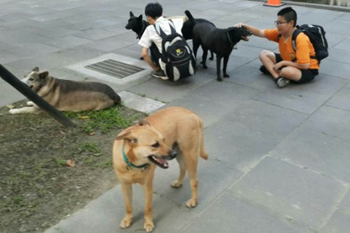 *社區小朋友和犬隻開心互動。