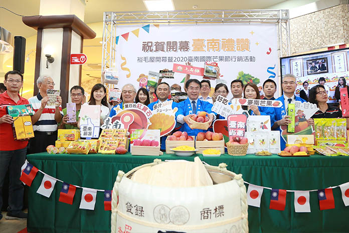 南芒果正值盛產旺季,台南市長黃偉哲再次化身超級行銷達人,配合裕毛屋台中公益店於20日重新開幕,台南市長黃偉哲率農業局長謝耀清、農會總幹事及業者,帶著當季鮮甜的芒果及各區特色優質農特產品上架裕毛屋超市,熱情歡迎台中市民朋友購買優質台南農特產,黃市長並祝賀裕毛屋銷售長紅。