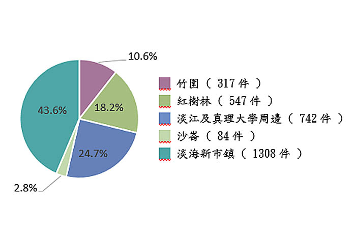 進一步比較,各生活圈購屋者條件大致相似,以53%左右為女性,且近5成為40~60歲年齡層。在交易建物型態方面,各生活圈8成以上皆為大樓及華廈交易,但是淡江及真理大學周邊、沙崙以及竹圍生活圈因屬較早期發展地區,公寓型態交易亦分別占19.4%、11.9%、9.1%具相當比例,而且這3個生活圈交易屋齡20年以上的比例幾達或超過50%以上。若以交易總價分析,則以淡江真理大學及沙崙周邊分別有62.3%、48.8%的交易總價在600萬元以下,受限於街區相對老舊,近年來開發案較少,加上成交產品面積較小,為淡水價格相對容易入手的地方;而相對接近臺北市的竹圍、紅樹林地區因生活機能、交通或景觀條件優勢,成交總價也約有20%在1,800萬元以上,平均成交單價超過30萬以上的比例均超過40%,是淡水成交總價最高的區域。