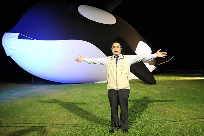 假即將優游在安平水面上的安平虎鯨Orca,即日起於億載金城進行14天的「隔離檢疫」;為了歡迎這位遠道而來的嬌客,24日晚由台南市長黃偉哲特別親自接待,隆重舉行來台見面記者會,於億載金城防疫隔離萌樣,連黃偉哲也無法招架。