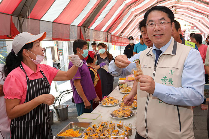 南國際芒果節繼走馬瀨農場開幕,緊接著在百果之鄉的楠西登場!台南市長黃偉哲於27日繼續行銷擁有夏日紅寶石美稱的芒果,來到台南最大芒果產區的楠西為愛文芒果王等獲獎者頒獎。頒獎結束後又來到市集與民眾及攤商同樂,邀請大家作伙來品嚐既消暑又甜蜜的芒果冰,行銷優質台南芒果的最佳代言人。