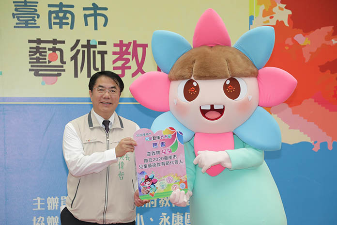 南市首創「Bravo!臺南show藝夏-2020兒童藝術教育節」將於暑假展開,本次以五藝為主軸,透過系列活動規劃,讓台南囝仔藝展長才,SHOW出自信,台南市長黃偉哲於30日親自上場宣傳,並為吉祥物「朵朵」授證為活動代言人,以花朵造型象徵可愛孩童開展無限創意,讓美感深植心中並遍地開花。