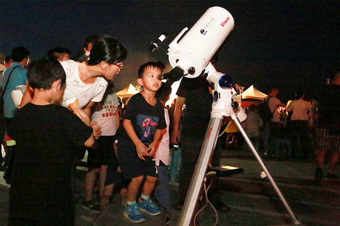 台南市長黃偉哲關心天文科學教育推廣,指示教育局、南瀛天文館力推暑期活動,辦理多項趣味體驗,讓天文科學知識寓教於樂!市議員吳通龍也到場關心天文嘉年華的推廣。
