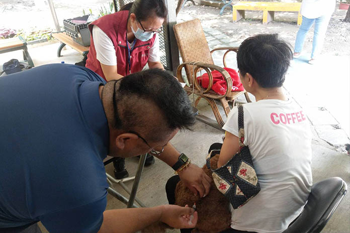 *幫民眾毛寶貝施打狂犬病疫苗情形。