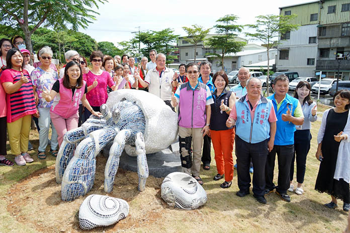 北市淡水區公所號召義山市民活動中心附近的里民參與製作公共藝術「義山一隻寄居蟹」,於2020年7月24日下午正式啟用,以珠螺寄居蟹、海浪作為創作主題兼具街道家具休憩功能讓義山的居民在孰悉的回憶中憶起寄居蟹及珠螺,並停坐這裡看著大屯山的白雲及大冠鷲,回味往日時光。