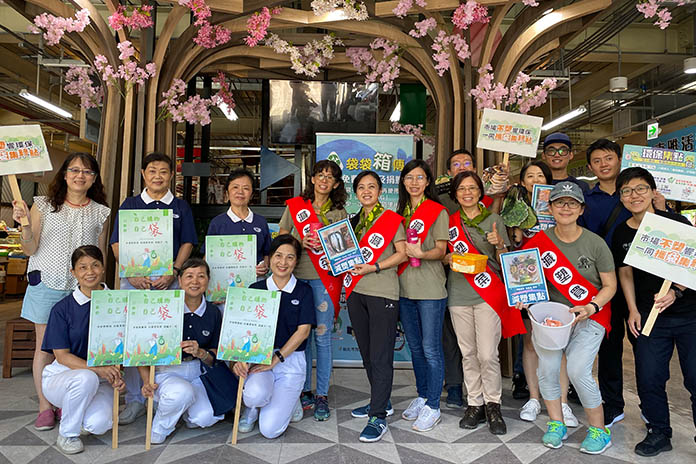 荒野保護協會及佛教慈濟基金會志工也來到現場跟民眾分享自身減塑購物經驗,並一同向市民朋友推廣減塑重要性,在這些志工的推動下,讓這三個市場要成功轉型為不塑市場。