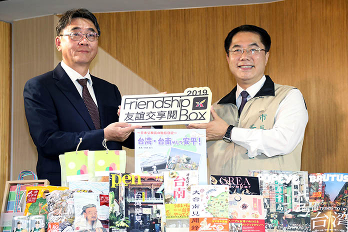 台南市長黃偉哲指出,在2019年大規模推動「Friendship Box友誼交享閱」計畫,獲得日本21個城市響應,台南市寄出了30箱裝有台南相關日文書籍與文宣給這些城市,在當地30個圖書館展出台南特展,讓日本市民認識台南;基於平等互惠,台南市也同樣在鹽埕圖書館推出日本合作城市特展,讓台南市民透過展覽認識在日本的好朋友,至今已經展出過群馬縣、滋賀縣、仙台市、金澤市、日光市、山形市、熊本縣等日本城市,深獲市民朋友好評。