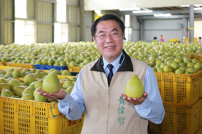 *台南市長黃偉哲於8月22日再度宣布將7.8公噸的台南文旦啟航外銷到新加坡最大零售超市-職總超市,持續增加台南文旦外銷量,讓農民大賺錢。