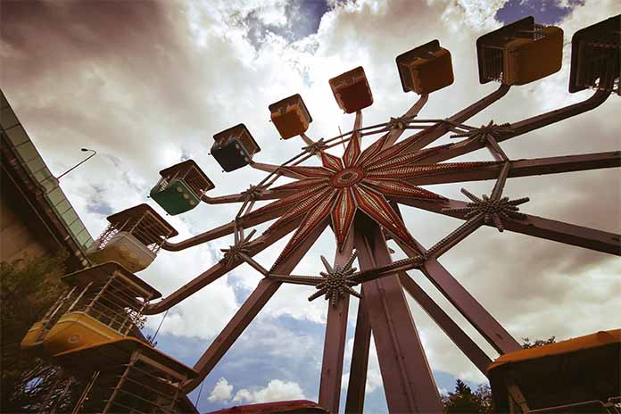 從圓山捷運站2號出口往河濱方向步行約10分鐘左右,由「圓山一疏散門」進入,映入眼簾的是一大片廣闊平整的草坪區,蜿蜒的園路旁種植不少枝幹盤旋交錯的大樹,顯得綠意盎然、生氣蓬勃,而停運的2座遊樂設施─摩天輪和旋轉木馬,成為公園內大型裝置藝術,供遊客拍照留念,而懷念的咖啡杯、迴旋椅、太空船等設施早已拆除,滿滿的童年回憶在心中無盡延伸。