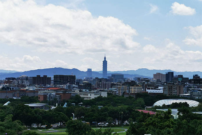 通過古城門「東門」及「南門」,沿著護城牆走,可見寬敞的飛躍廣場,偌大的廣場佇立著一個石造日晷及兩尊人像,與遠處的101大樓相伴,伴隨著夕陽西下,更有另一番風情。