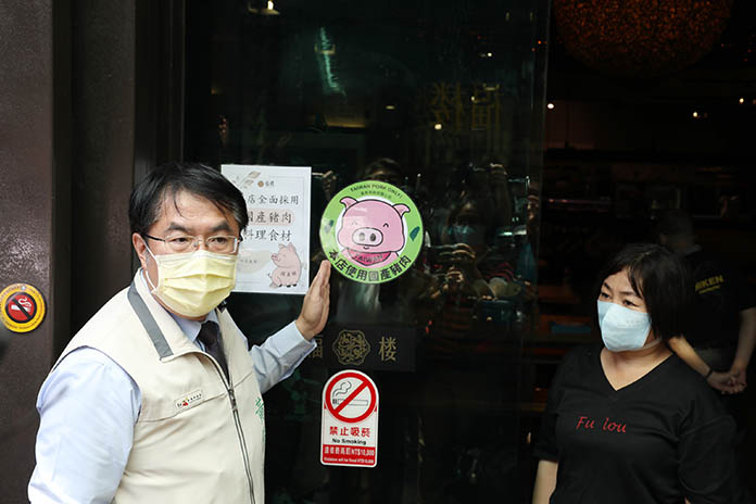 對進口豬、牛肉競爭,台南研擬5招推廣本國豬牛肉措施,台南市長黃偉哲繼8月30日在下營田媽媽餐廳貼上首張「本店使用國產豬肉」認證標章,8月31日再次於中西區福樓餐廳貼上認證標章;黃偉哲表示,因進口美豬的問題產生沸沸揚揚的討論,台南市快速推動超前部署政策,今日起全面推動「國產豬」標誌政策,還是優先使用國產豬肉;另因應明年元月開放美國豬肉、牛肉進口,本市自製的國產豬標章分送給轄內使用國產豬肉餐廳、食品業者張貼於明顯處,讓消費者有依循依據可自由選擇。
