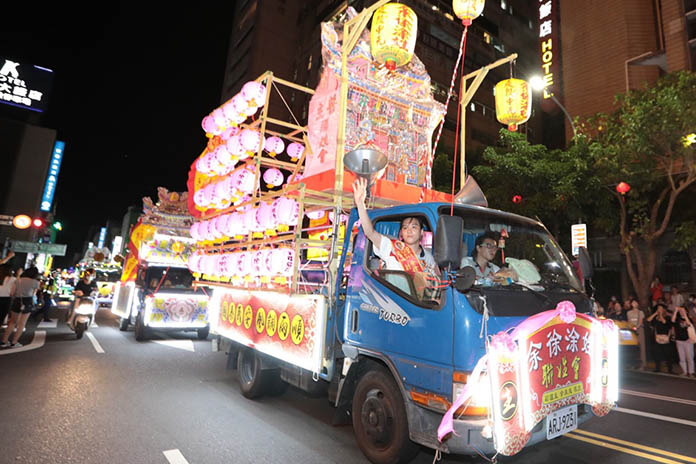 迎請水燈頭市區遊行是一系列中元祭典中各宗姓拼陣的最高表現,除象徵姓氏團結的力量,也兼具宗教及民俗意涵;在繞境祈福的水燈車隊抵達市政府大門時,林市長分別頒贈「弘揚文化」的匾額,給今年輪值主普的白、童姓宗親會,宗親會的宗長們將匾額掛在車隊前,繼續在市區進行繞境祈福,吸引許多民眾夾道觀賞這一年一度的宗教盛事。