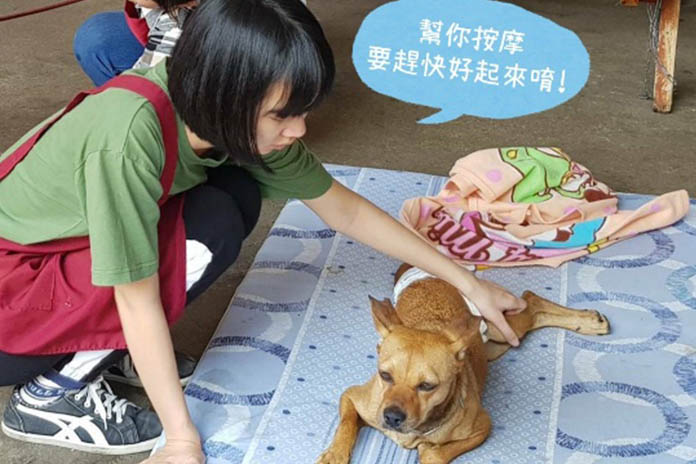 *志工細心為後肢癱瘓的毛寶貝按摩。