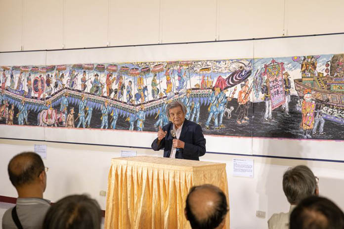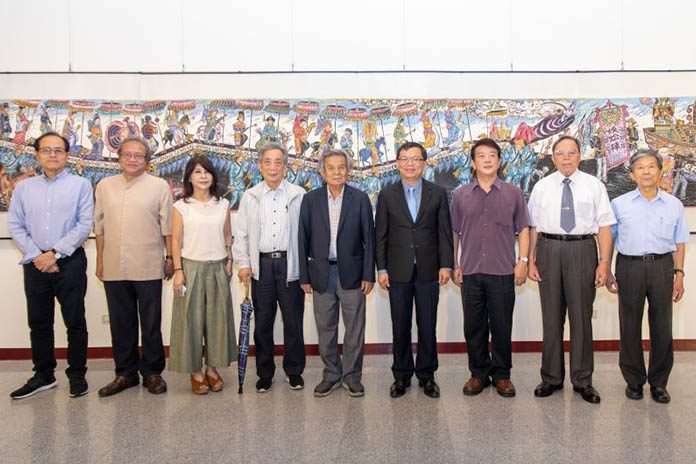 術家林智信耗時20年創作,長達124公尺的版畫巨作〈迎媽祖〉完整再現!「媽祖藝陣.土地印記–林智信邀請展」即日起在國立中正紀念堂1展廳開展,9月4日文化部常務次長李連權、中正紀念堂管理處處長林進盛、台南市美術館董事長黃光男、藝評家蕭瓊瑞、台陽美術協會理事長吳隆榮、導演林福地等多位藝文界人士皆出席開幕式,對藝術家林智信致力重現台灣民俗,以藝術關懷土地的人文精神表達支持,現場盈滿藝術氣息。