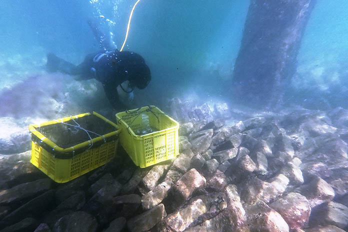 北市貢寮區是貢寮鮑的故鄉,貢寮區潮間帶養殖池生產品質優良的貢寮鮑,除了這裡擁有清澈乾淨的良好水質外,還需要貢寮鮑養殖達人們定期潛水檢視貢寮鮑生長狀況並細心呵護下,方能照顧好這些海中的嬌客-貢寮鮑。