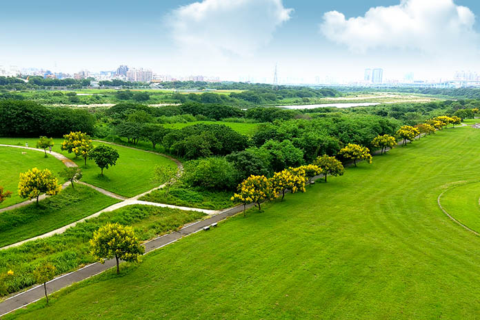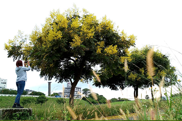 身為台灣優秀的特有種植物,因有黃色小花燦爛佈滿樹冠,每當風兒輕輕吹動,那鮮黃色的花瓣飄落時,有如黃金雨一般,那樣浪漫、迷人,所以台灣欒樹也稱「台灣金雨樹」。目前正在秋季的新北河濱大放異彩著,除了金黃花海步道,一旁還有一大片翠綠草地與綿延的自行車道,在綠油油草地中與欒樹合影也很療癒,是否該找天週末或是某個涼爽的午後,安排一趟愜意鐵馬遊呢?
