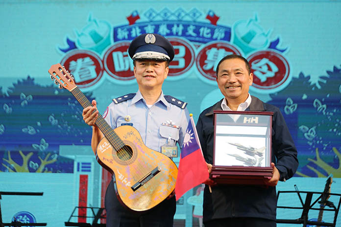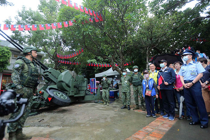 北眷村好美味high翻整個10月!「2020新北市眷村文化節」10月9日上午於空軍三重一村熱鬧登場,新北市長侯友宜邀請大家一起來品嘗眷村好味道,並與空軍副司令鄭榮豐中將互贈禮物、參觀現役35快砲,也在國慶日前夕與現場民眾一同祝賀中華民國生日快樂。